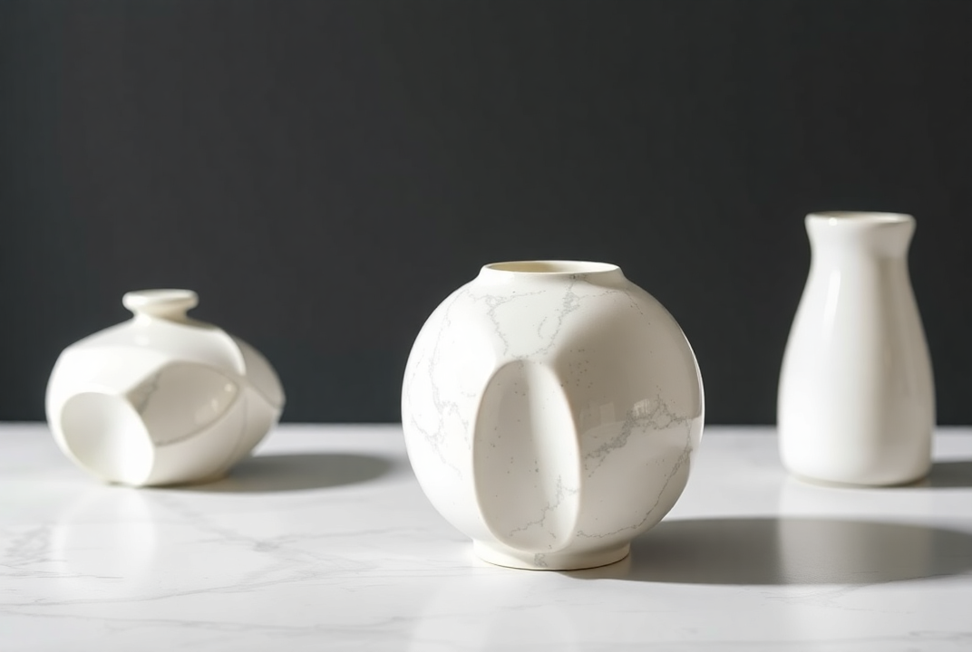 This stylish set of three handmade ceramic vases adds elegance to your home decor with its modern design. The white color and fine details make it stand out in any space.